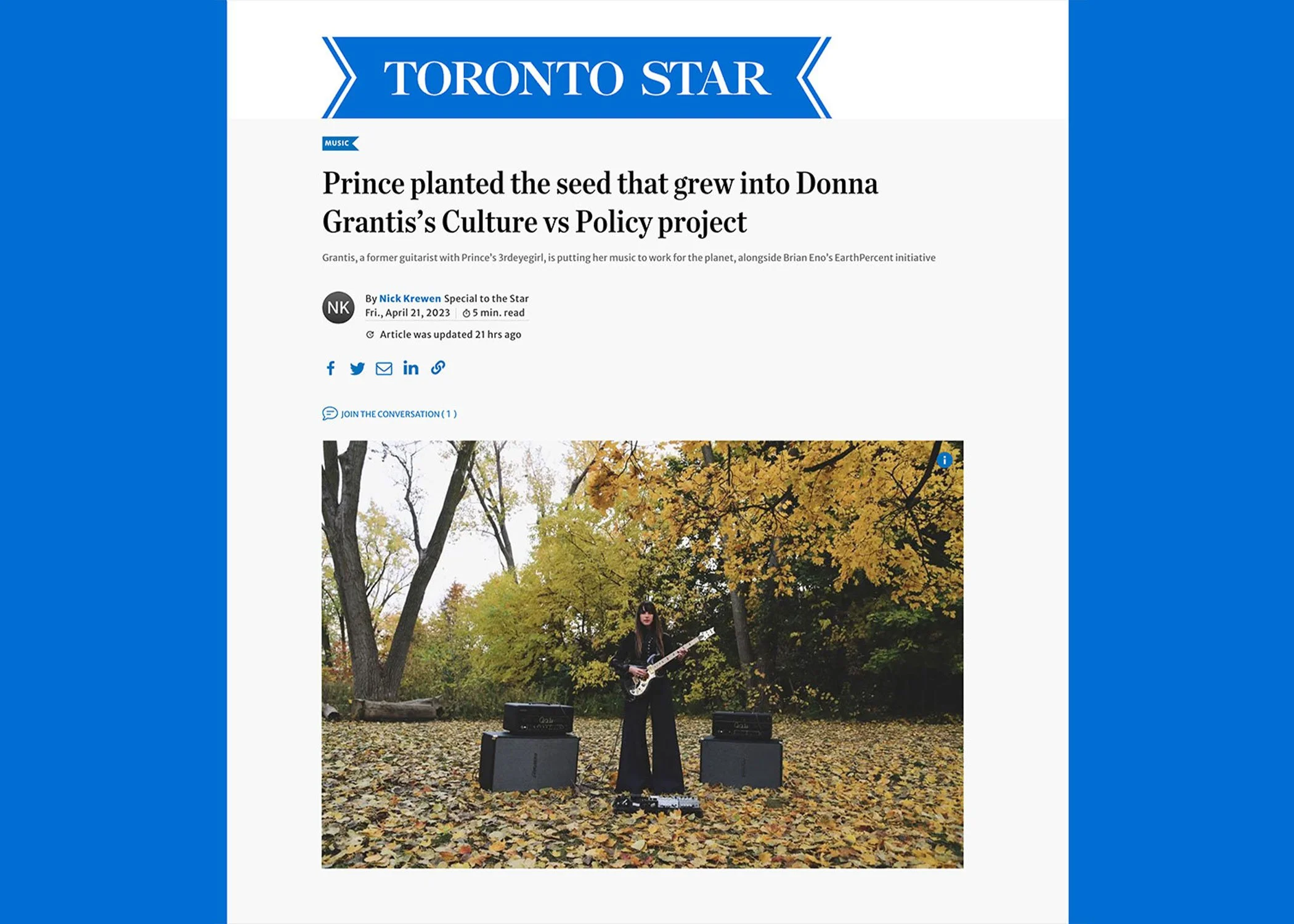 Prince planted the seed that grew into Donna Grantis’s Culture vs Policy project, The Toronto Star